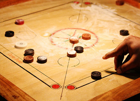 Carrom (also spelled carom) is a cue sport-based tabletop game of South Asian origin. The game is very popular in Afghanistan, Nepal, India, Pakistan, Sri Lanka, Bangladesh, and surrounding areas, and is known by various names in different languages. In South Asia, many clubs and cafés hold regular tournaments. Carrom is very commonly played by families, including children, and at social functions. Different standards and rules exist in different areas .